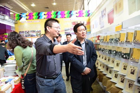 5日上午,河北省委宣传部副部长武鸿儒在集团公司副总经理王耀珍、市场营销部主任薛泽锋,省店公司总经理于慧丰、常务副总经理徐斌等人的陪同下,对书市的运行、图书的销售、文化活动的举办等情况进行了视察,慰问了在节日里一直在坚守在书市一线为广大读者服务的工作人员。武鸿儒副部长先后来到河北冠林、河北教育、方圆电子、河北科技、河北美术、藏书报、河北省新华书店等单位展位前,与工作人员和读者进行了交流,详细了解了书市的备货品种、优惠力度、销售情况、读者的兴趣爱好、对书市的反映等等。