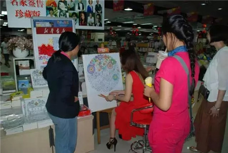 现场涂色专区吸引了众多读者围观并参与其中,带动了《秘密花园》涂色书的火爆热销。