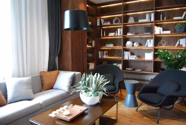 走进来,第一眼看到的是暖暖的灯光、柔软的沙发、浅棕色的木质地板,宛如家一般温馨。书架上的书,不是规规矩矩地排列着,而是有几分随意,更像是家中的书房。