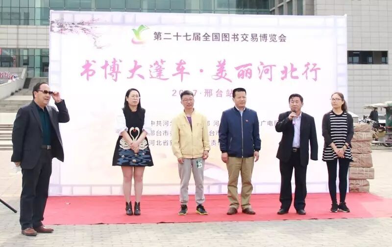 4月25日上午,由省宣传部、省出版广电局、邢台市宣传部市文广新局、市新华书店共同举办的书博大篷车·美丽河北行巡展邢台站接车仪式于市文广新局西广场(即市图书馆西广场)举办。