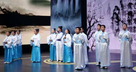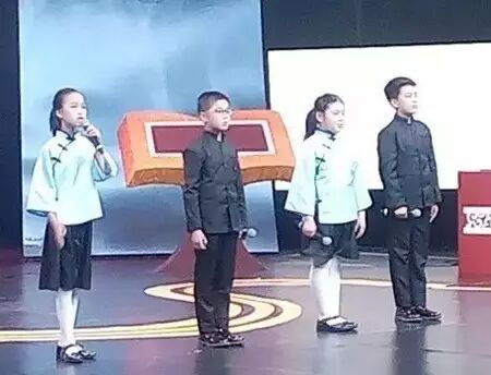 集体诵读《论语》的是二年级的小朋友,他们作为全场年龄最小的选手,将历时一年半的《论语》诵读学习展现的十分出色,他们身着古装、手执书简,半眯双眸、摇头晃脑,在悠扬的音乐声中且吟且诵,这些读书人的招牌动作,全在这些小小书生身上得到了再现。对于第一次参加大型比赛的孩子们,举止自然,毫无紧张,他们深得读书真味的表现赢得了观众一片掌声,更赢得了诸多评委专家的一致好评。