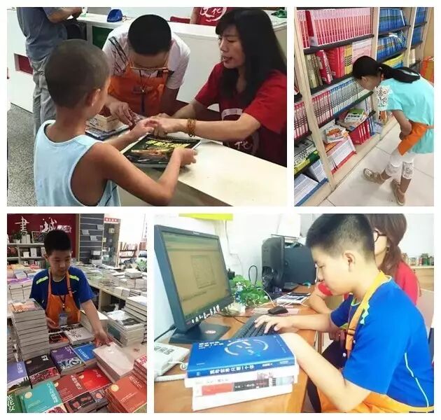 接下来,他们就与书城的管理员一起开始工作了,体验在书城工作中的快乐与繁复。当顾客看到这些小营业员时,不禁在欣喜之余找他们聊了两句。“我想买五年级辅导书,在哪里呀?”“您要找的书在三楼,请随我来”一个顾客就这样跟着小营业员上了三楼。此外,很多被顾客放错地方的图书,小营业员们都一一认真整理,当大家看到整齐的图书,并听到大家的赞赏时,一个个高兴极了,心里比吃了蜜糖还甜。