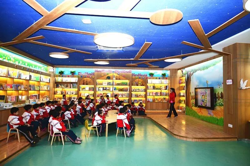新华 · 小桔灯绘本馆的设计完全尊重于儿童的心理感官需求,既可以迎合孩子们的兴趣,又可以提高孩子在色彩认知、模块识别、项目区分上的能力。吊顶采用星空立体造型,营造了科幻神奇的活动空间。绘本的陈列也按照不同的寓意采用个性化分类。