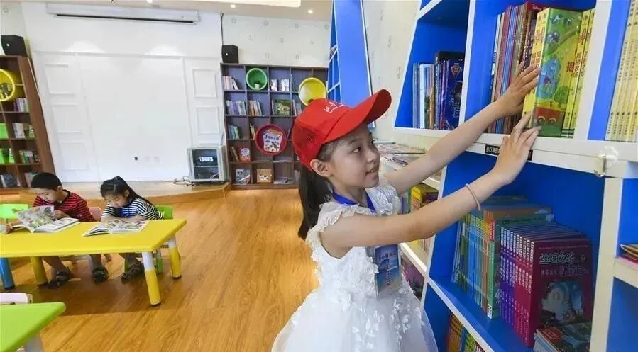 “小小荐书员”在整理书架