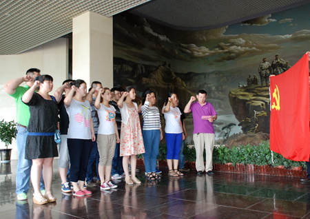 “我志愿加入中国共产党,拥护党的纲领,遵守党的章程……为共产主义事业奋斗终身,随时准备为党和人民牺牲一切,永不叛党。”7月1日,在革命老区涉县一二九师陈列馆内,省店公司总部的15名新党员面对鲜红的党旗庄严宣誓,用铿锵有力的声音,传递着心中的忠诚与激情。