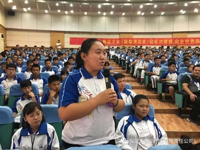 为关注、关爱全市青年学生的健康成长,帮助他们树立坚毅、乐观向上的品格,助力全民阅读活动的深入开展,9月21日下午3点,保定市店邀请到对外经贸大学学士、北京大学法律硕士、《超级演说家》第二季总冠军、现任媛创文化传媒有限公司CEO的刘媛媛到保定市外国语学校,与广大青年学生面对面交流互动,传播勤奋乐学、敢于拼搏的正能量。