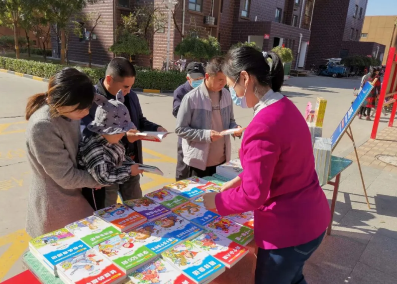 10月23日,石家庄儿童书城到雍雅花园社区傲湖小区开展图书展销活动,并为社区居民推荐精品图书,倡导居民健康阅读。