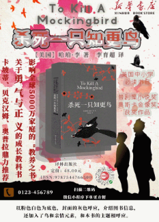 图书海报制作以《杀死一只知更鸟》一书为主题展开,选手们围绕书名、定价、推荐语的宣传主题,积极展示个人的创作功底,选手们熟练运用各种软件,制作出创意新颖、主题鲜明、美观大方的图书海报,形象地展示了本书的卖点。